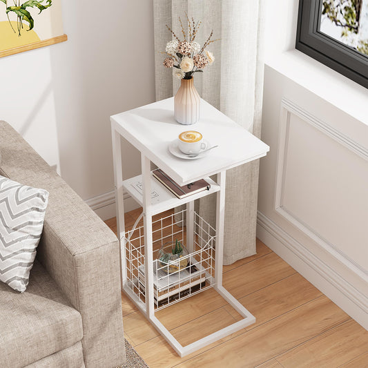 C Shaped End Table with Charging Station, Side Table for Couch, Small Side End Table for Small Spaces