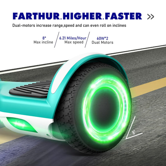 UNI-SUN Hoverboard for Kids, 6.5" Two Wheel Self Balancing Hoverboards with LED Lights, Green Hover Board (No Bluetooth)