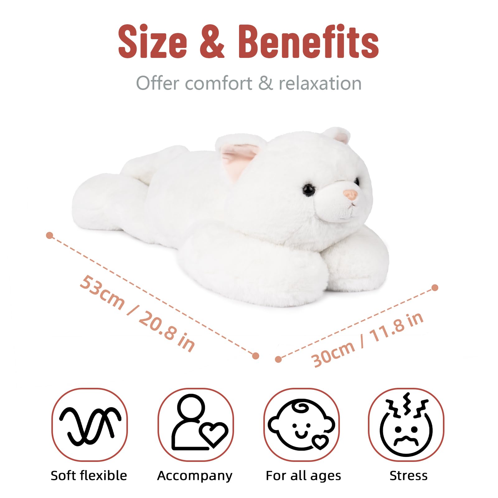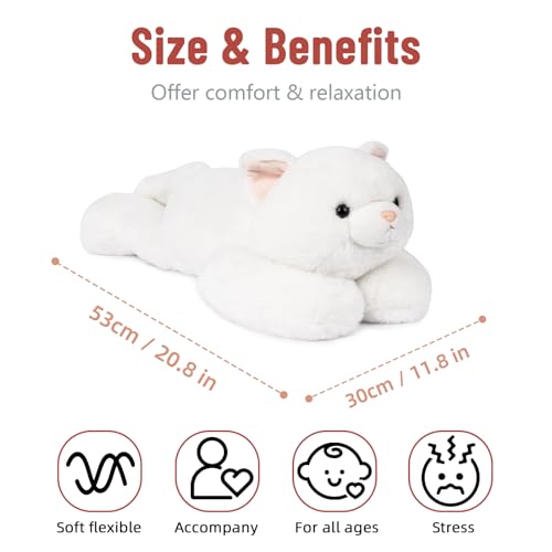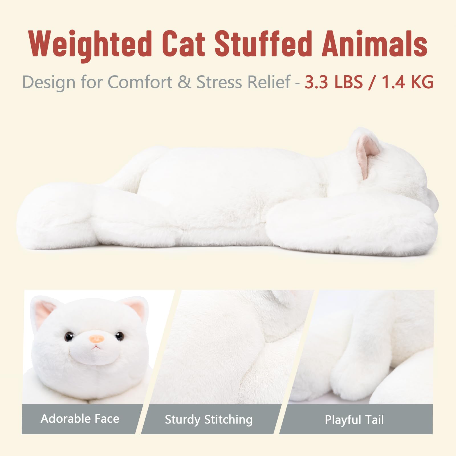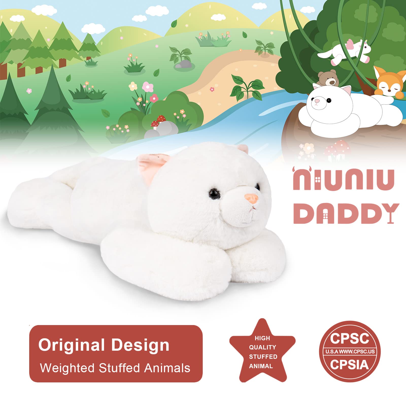 Niuniu Daddy 20" | 3.3 Pound Weighted Cat Stuffed Animals, Cute Plush Animal Toy for Kids Adults Toddler Teens, Large Soft Fluffy White Kitty Plushies