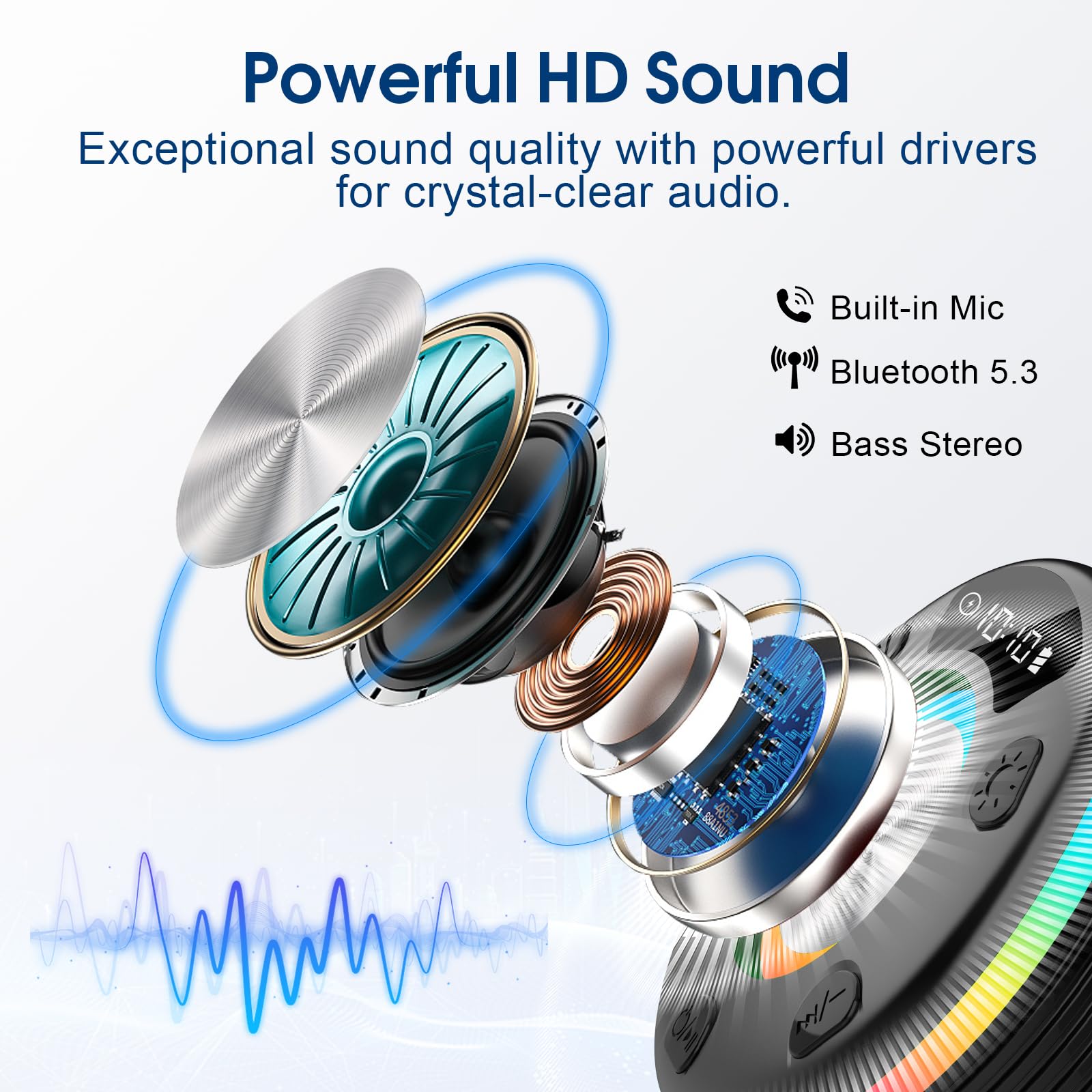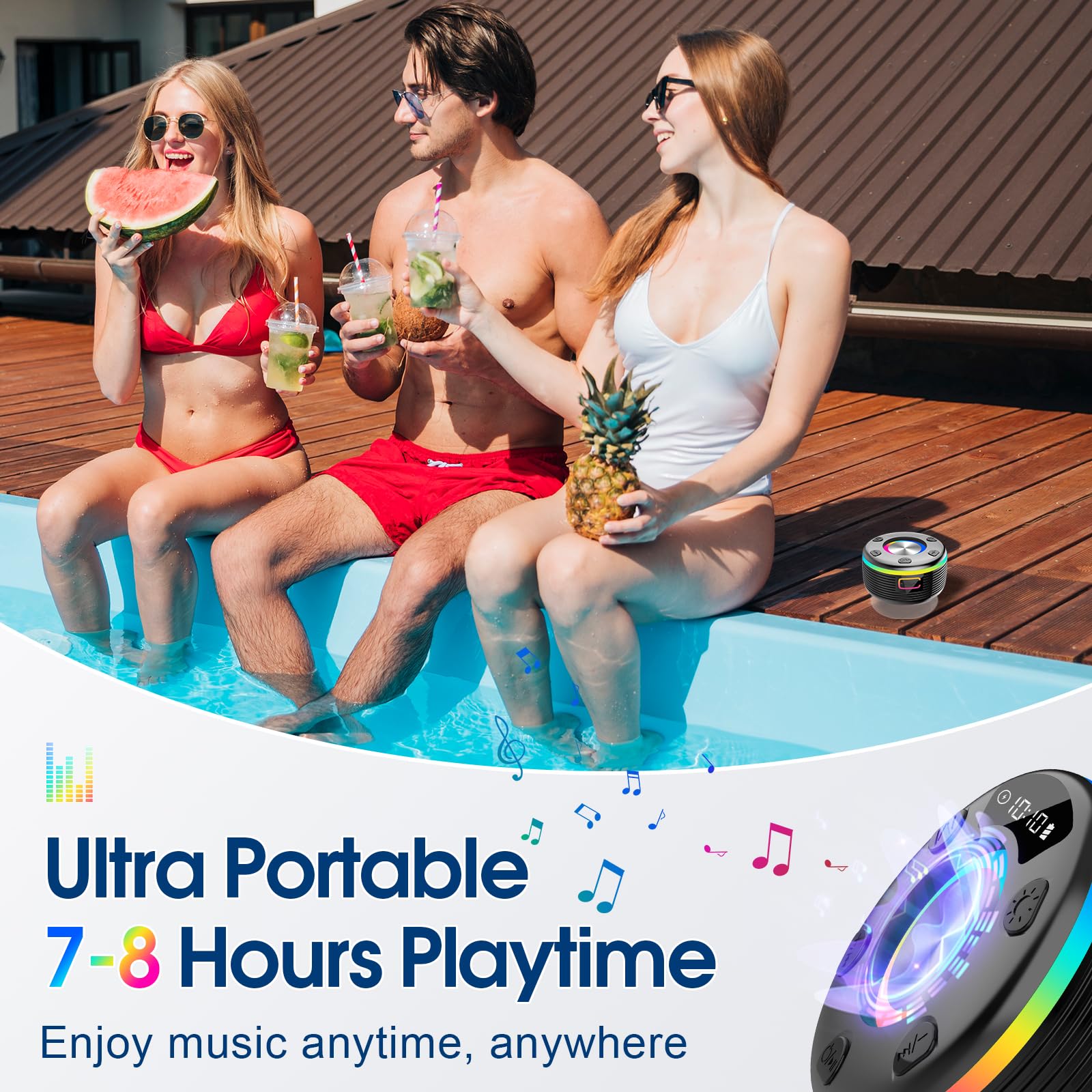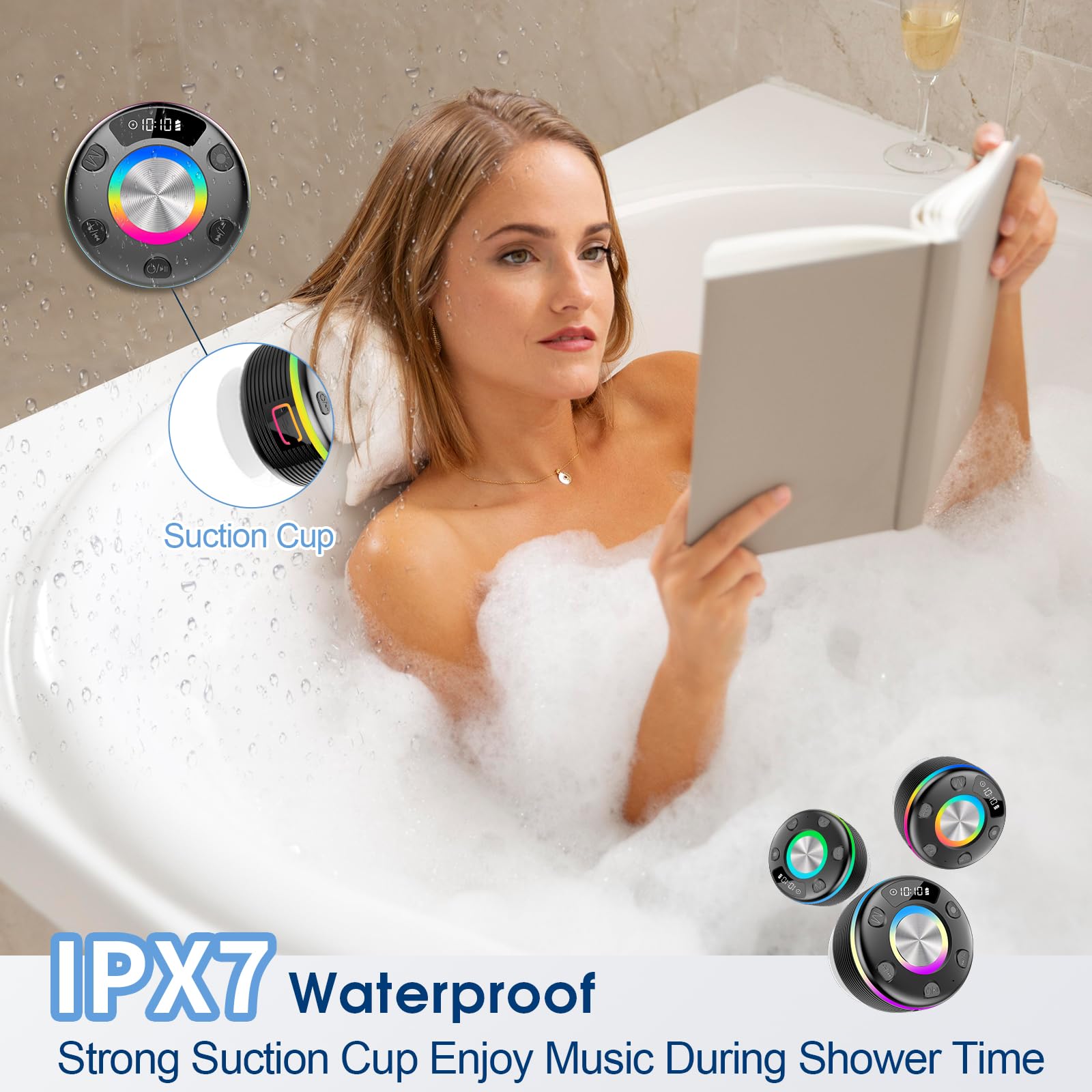 OYIB Bluetooth Shower Speaker, Portable Bluetooth Speaker 360° HD Sound, RGB Lights, FM Radio, IPX7 Waterproof Wireless Speaker with Suction Cup and Mic, Shower Radio for Party/Outdoor/Travel/Gifts
