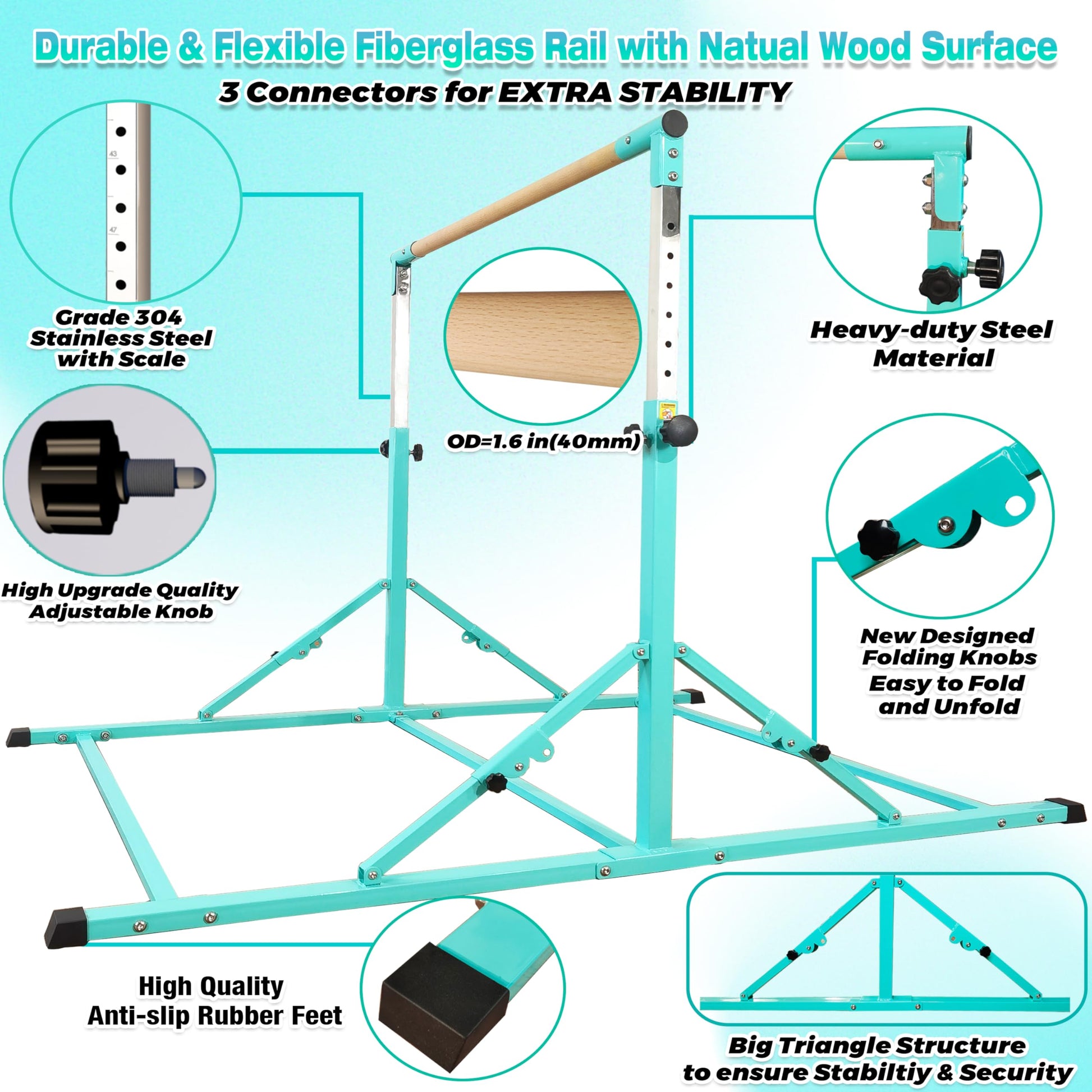 PreGymnastic Foldable Gymnastics Bar, 6FT Gymnastic Horizontal Bars, Folding Training Bar for Kids and Teenagers 3-18, Weight Limit 500 LB
