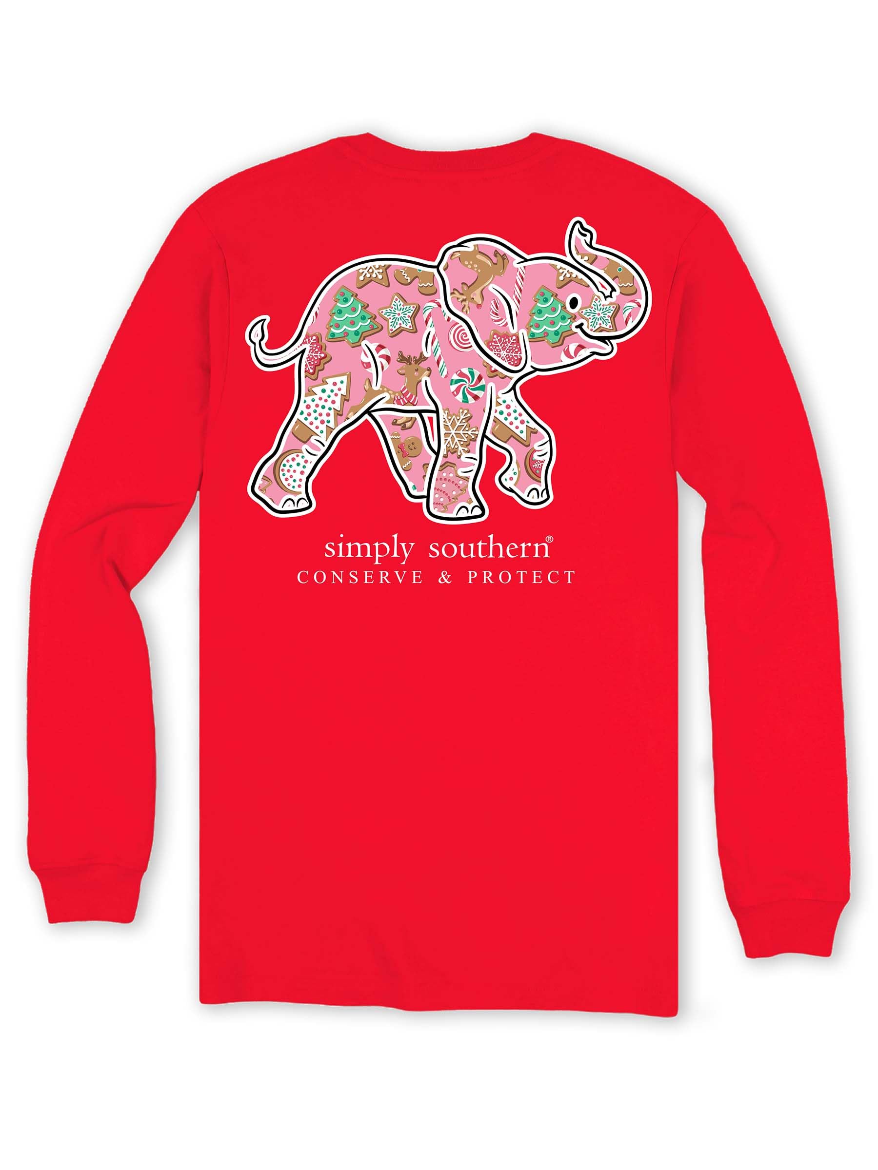 Simply Southern Elephant - Christmas Theme - Youth Long Sleeve (US, Alpha, Medium, Regular, Red)